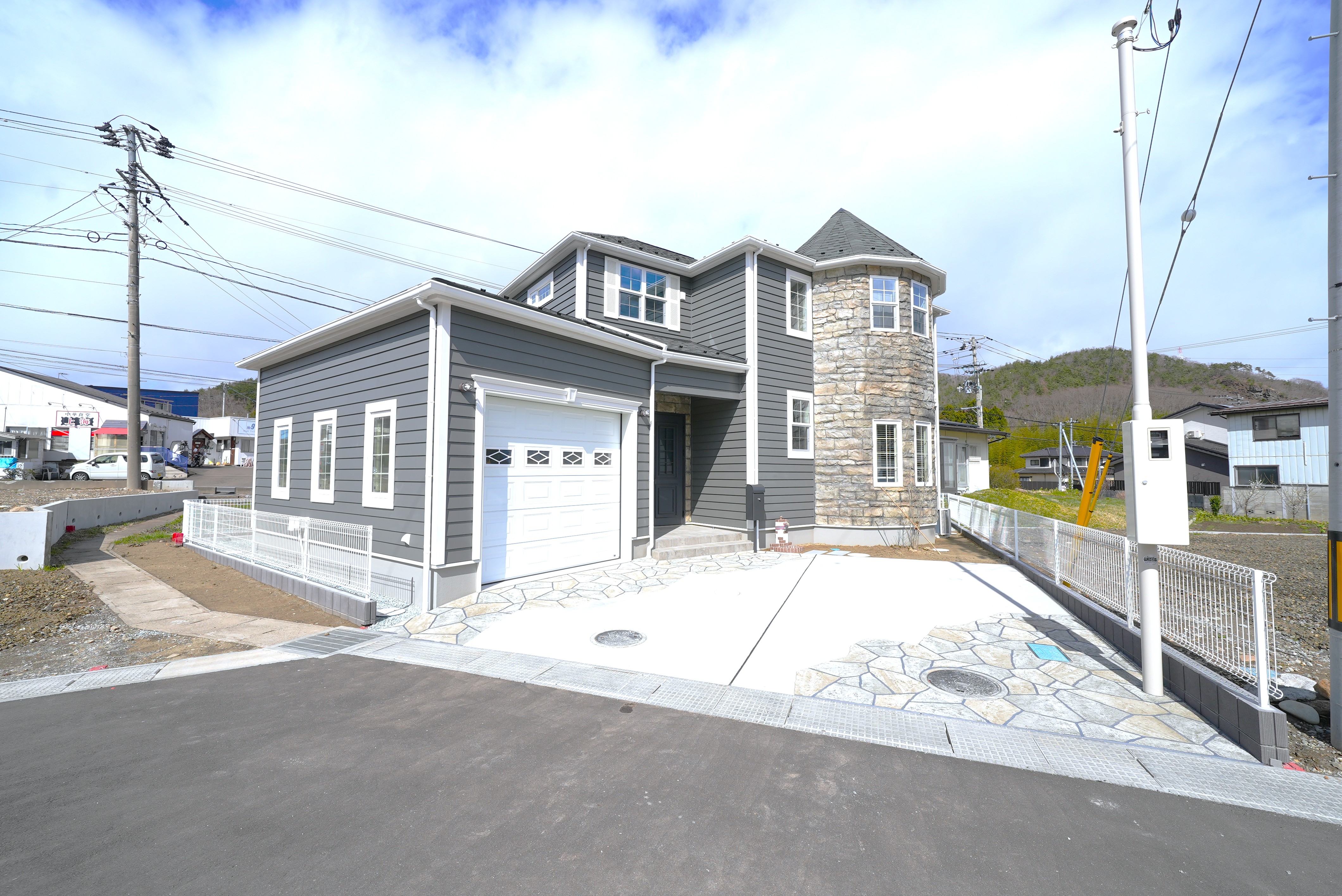 当社の代名詞であるビルトインガレージと多角形の塔屋をあしらえたトレンディなガレージハウス。