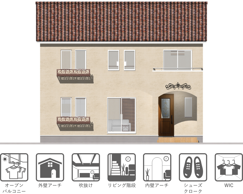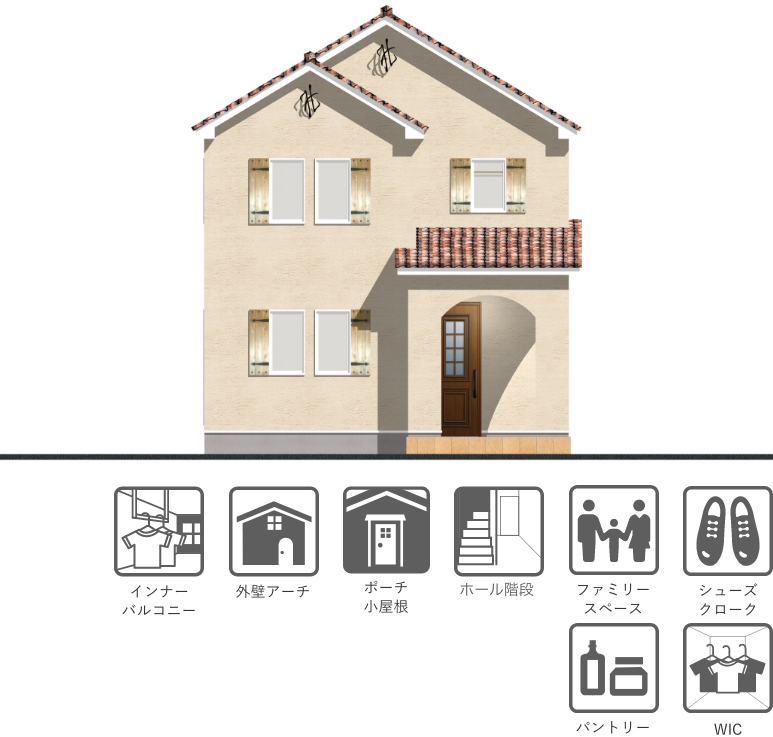 陽の光をたっぷりと浴びて、心地よいリビングに家族が集います。人気のシューズクロークやリビング階段を施した使いやすさ満点のプランです。