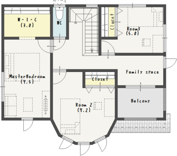 広々としたバルコニーや多目的に使えるファミリースペースなど、家族みんなにやさしいプランです。